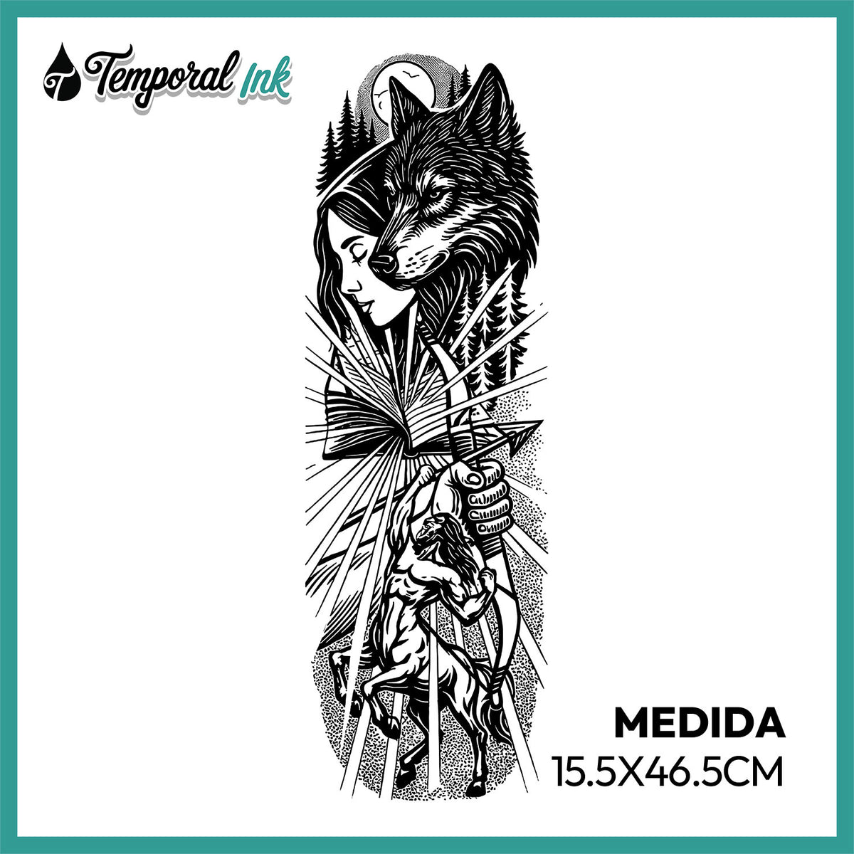 El tamaño de este tatuaje es de 15.5x46.5cm