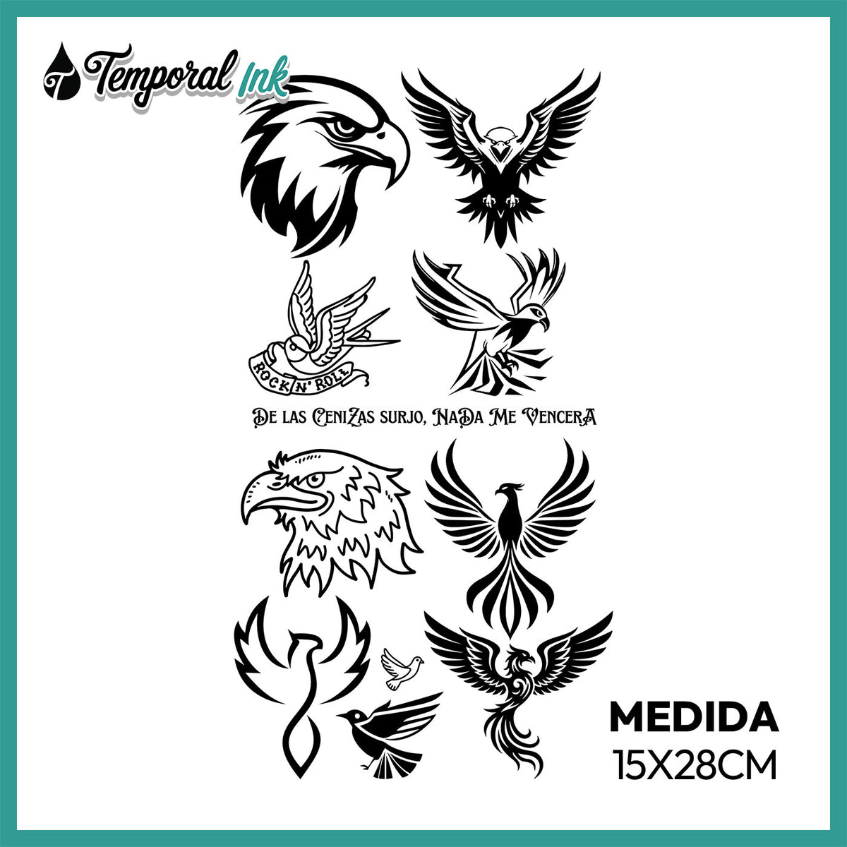 Pack Tatuaje Temporal Aves Fénix