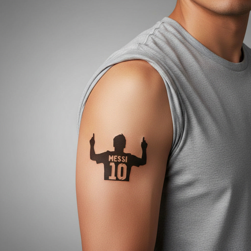 Silueta celebrando con el número 10 en la espalda. Diseño ideal para fans del fútbol.