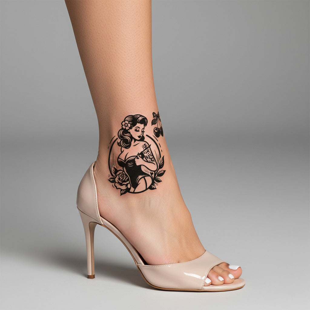 Tatuaje temporal pin up clásica